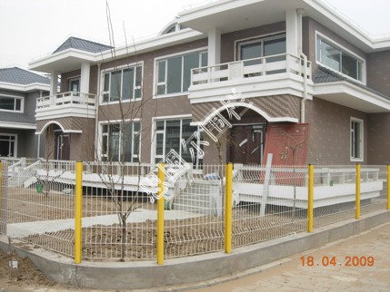 鐵絲網(wǎng)小區(qū)圍欄是由排焊機(jī)對(duì)鐵絲焊接成型,在經(jīng)過折彎、表面處理,立柱制作,安裝后形成。