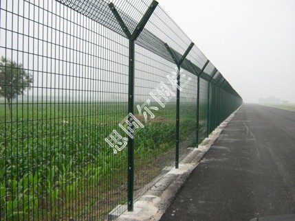 飛機場圍欄又稱作“Y型安全防御護網(wǎng)”,是由V型支架立柱,加強型焊接片網(wǎng),安全防盜連接件和熱鍍鋅刀片刺籠組成強度和安全防御性級別很高。近年來,被廣泛應(yīng)用在機場,軍事基地等高安全場所。