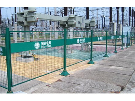 網(wǎng)片表面鐵板經(jīng)浸塑之后絲網(wǎng)印刷國家電網(wǎng)標(biāo)志。標(biāo)志新穎,主題突出。是國家電網(wǎng)護欄網(wǎng)與其他護欄網(wǎng)明顯的區(qū)別,組裝十分靈活,快捷,方便.色彩鮮艷、抗老化、防腐蝕、強度高。外力撞擊不易變形。