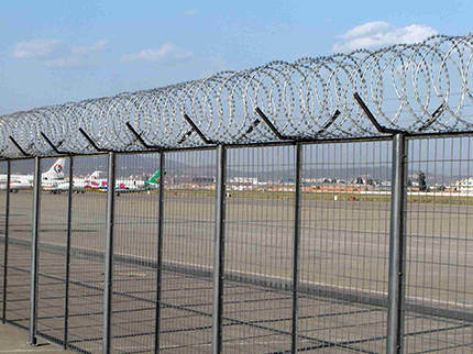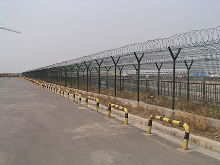 飛行區(qū)鋼筋網(wǎng)圍界一般采用5.0mm的優(yōu)質(zhì)低碳鋼絲焊接;網(wǎng)孔(mm) 50x100 50x150 50x200網(wǎng)片中帶有Y型加強筋可增強護欄網(wǎng)的抗沖擊力。立柱為60X60矩形鋼,頂端含有Y型支架或者采用70mmX100mm的掛式連接立柱,飛行區(qū)鋼筋網(wǎng)圍界網(wǎng)片鏈接采用特制SBS扣件,有效防止人為破壞性拆卸,產(chǎn)品均為熱鍍鋅后采用高質(zhì)量的聚酯粉末靜電噴涂,采用國際流行的RAL顏色,飛行區(qū)鋼筋網(wǎng)圍界主要用途:機場封閉 、私人地域、軍事重地、 場區(qū)圍網(wǎng)、 開發(fā)區(qū)隔離網(wǎng)使用;
